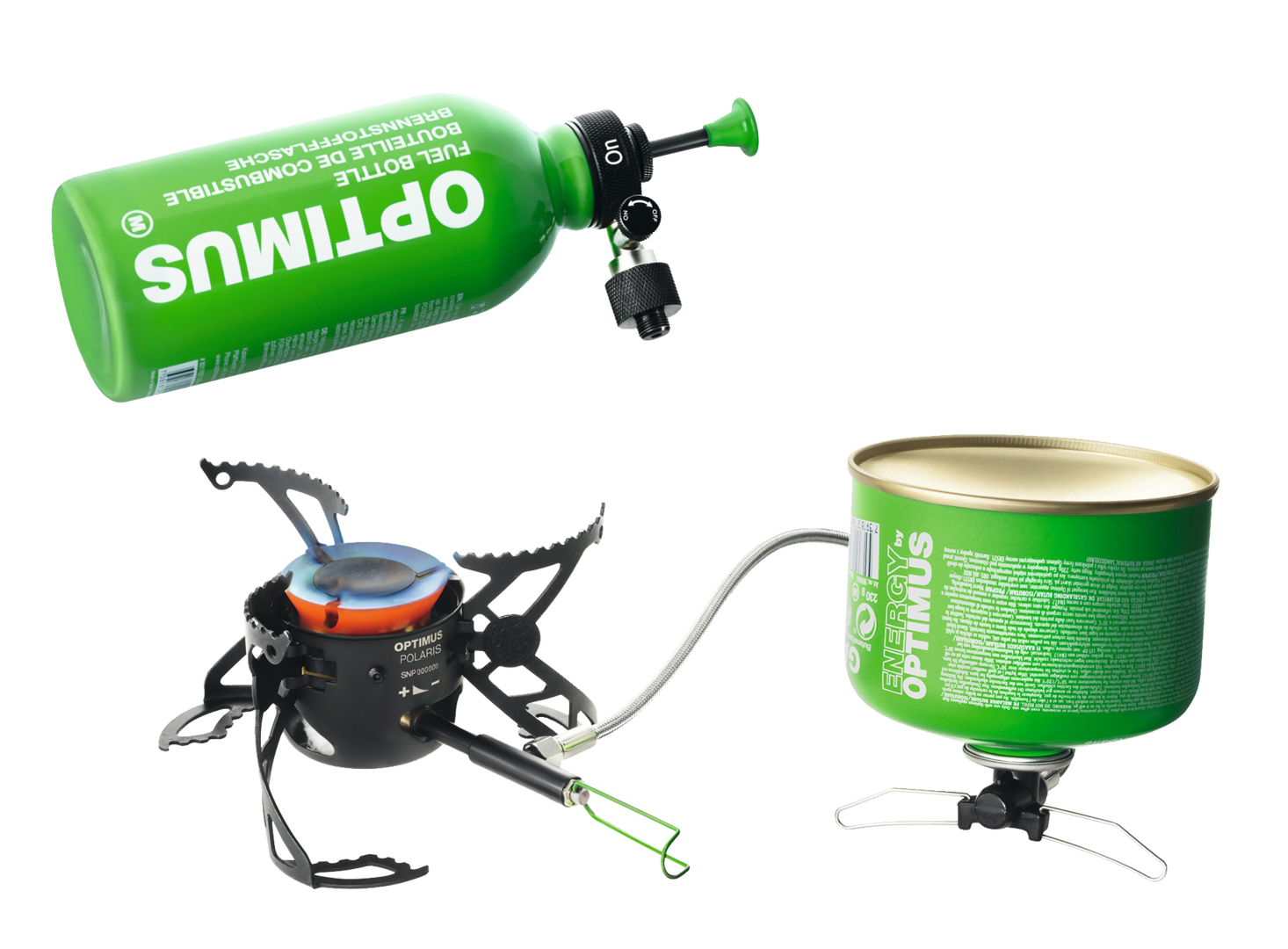 Optimus Polaris Optifuel. Mit diesem vielseitigen und preisgekrönten Optimus Polaris Optifuel Kocher erwartet Sie ein Multitalent, das mit fast jedem Brennstoff (Gas, Reinbenzin, Petroleum, Diesel oder Kerosin) läuft und so jederzeit, an jedem Ort und bei jedem Wetter eine warme Mahlzeit liefert. Dafür sorgt ein überragender, verlässlicher Brenner, bei dem unterwegs weder Düse noch Zubehör getauscht werden müssen. Benutzt man LPG-Gaskartuschen, muss lediglich zwischen dem 4-Saison-Modus bei Kälte oder dem Brennsparmodus gewählt werden. Mit der integrierten magnetischen Reinigungsnadel erfolgt die Reinigung der Düse schnell und einfach während des Kochens.
