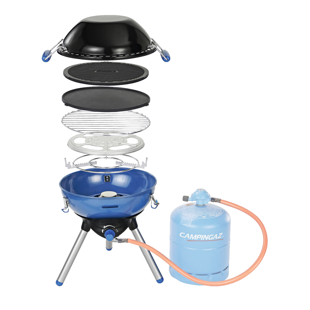 Party Grill. Die Geräte der Linie Party Grill sind eine multifunktionale Alternative zu traditionellen Kochern und kompakten Grillgeräten. Sie sind im Nu vom Kocher zum Grill umfunktioniert, sind einfach zu reinigen und in Ausführungen für den Betrieb mit Propan-, Butangasflaschen oder Ventilkartuschen erhältlich. Alle Komponenten können im Inneren des Kochers gelagert werden um den Transport und die Lagerung zu vereinfachen.