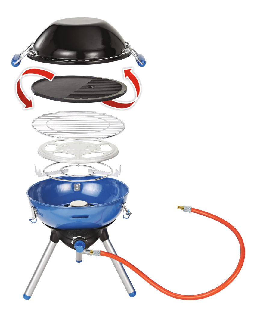 Party Grill. Die Geräte der Linie Party Grill sind eine multifunktionale Alternative zu traditionellen Kochern und kompakten Grillgeräten. Sie sind im Nu vom Kocher zum Grill umfunktioniert, sind einfach zu reinigen und in Ausführungen für den Betrieb mit Propan-, Butangasflaschen oder Ventilkartuschen erhältlich. Alle Komponenten können im Inneren des Kochers gelagert werden um den Transport und die Lagerung zu vereinfachen.