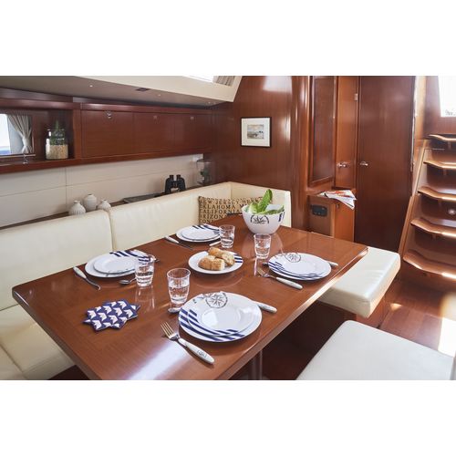 Marina und Südpazifik haben traditionelle Marinemuster, Windrose und Riffknoten mit einer stilvollen grafischen Behandlung.
