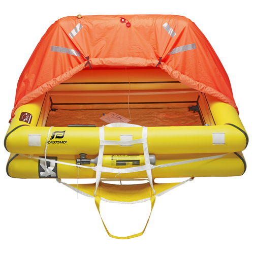 Für den Einsatz auch unter Extrembedingungen entwickelt : mehrere Kenterschutzsäcke mit großem Volumen, großer Treibanker, korrekte Aktivierung auch bei -15°C, isolierender Doppelboden, selbstaufrichtendes, leuchtend oranges Dach, Außenleuchte 4.3 cd, 1500 cm2 lichtreflektierende und radarreflektierende Streifen.