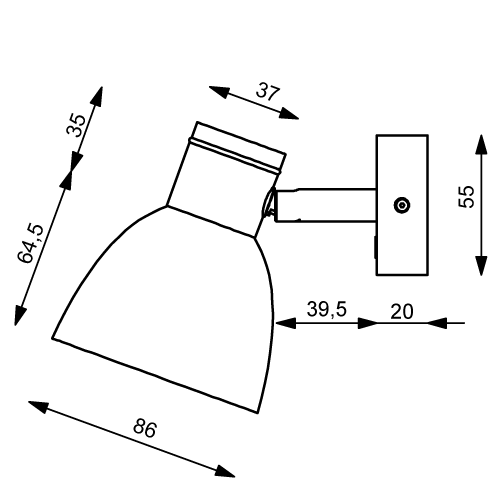 LED-Anbauleuchte R1-2, chrom-glanz, warmweiß, 10-30V DC, max. 3W, Glas schwarz, mit Dimmer
