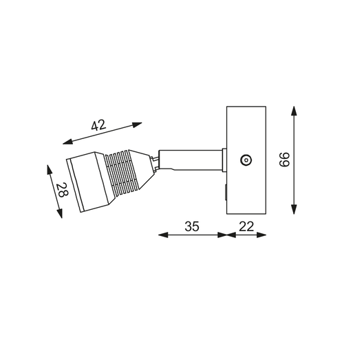 LED-Anbauleuchte R5 mit USB, chrom-matt, max. 3 W, 10-30V DC, warmweiß, 44°, mit Dimmer