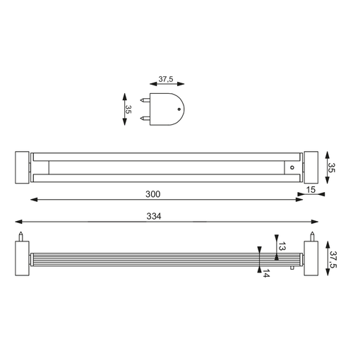 LED-Unterbauleuchte UB01-3, 300mm, chrom-matt, rot/warmw. umschaltb, max. 6W, 10-30V DC, mit Dimmer