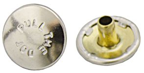 Wichtige Herstellerangaben: Pull-The-Dot® ist ein fest verschließender Druckknopf, der nur durch Zug in eine Richtung geöffnet werden kann. Zug in allen anderen Richtungen kann den Verschluß nicht öffnen.; Oberteil-Elemente, Messing vernickelt, Kappen-Ø ca. 15 mm