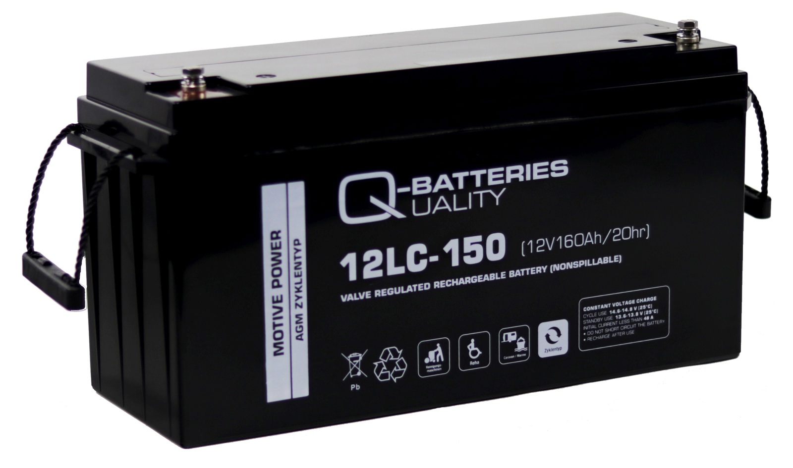 Q-Batteries 12LC-150/ 12V -160Ah gehört zur Kategorie AGM Zyklen Batterien und unterstützt die dort typischen Ausrüstungs- und Montageaufgaben an Bord.