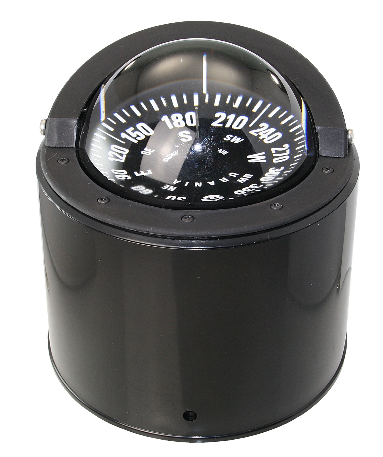 Antwort: RIVIERA URANIA BU 4" – 100 mm Kompassrose in schwarz mit 5° Einteilung; Topablesung mit entspiegelter Glaskuppe; Mit 12 V LED Beleuchtung