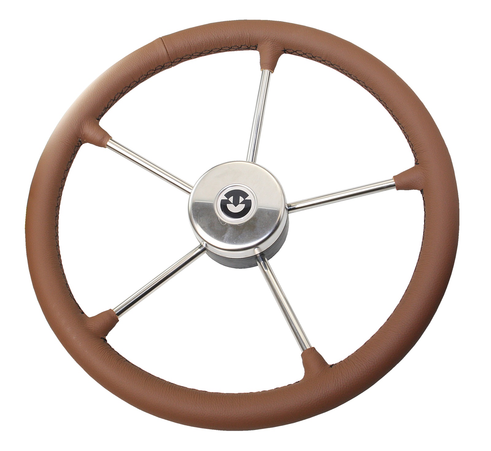 RIVIERA Steuerrad VR03 Edelstahl/Leder 400mm, braun mit schwarzen Nähten gehört zur Kategorie Typ VR03 und unterstützt die dort typischen Ausrüstungs- und Montageaufgaben an Bord.