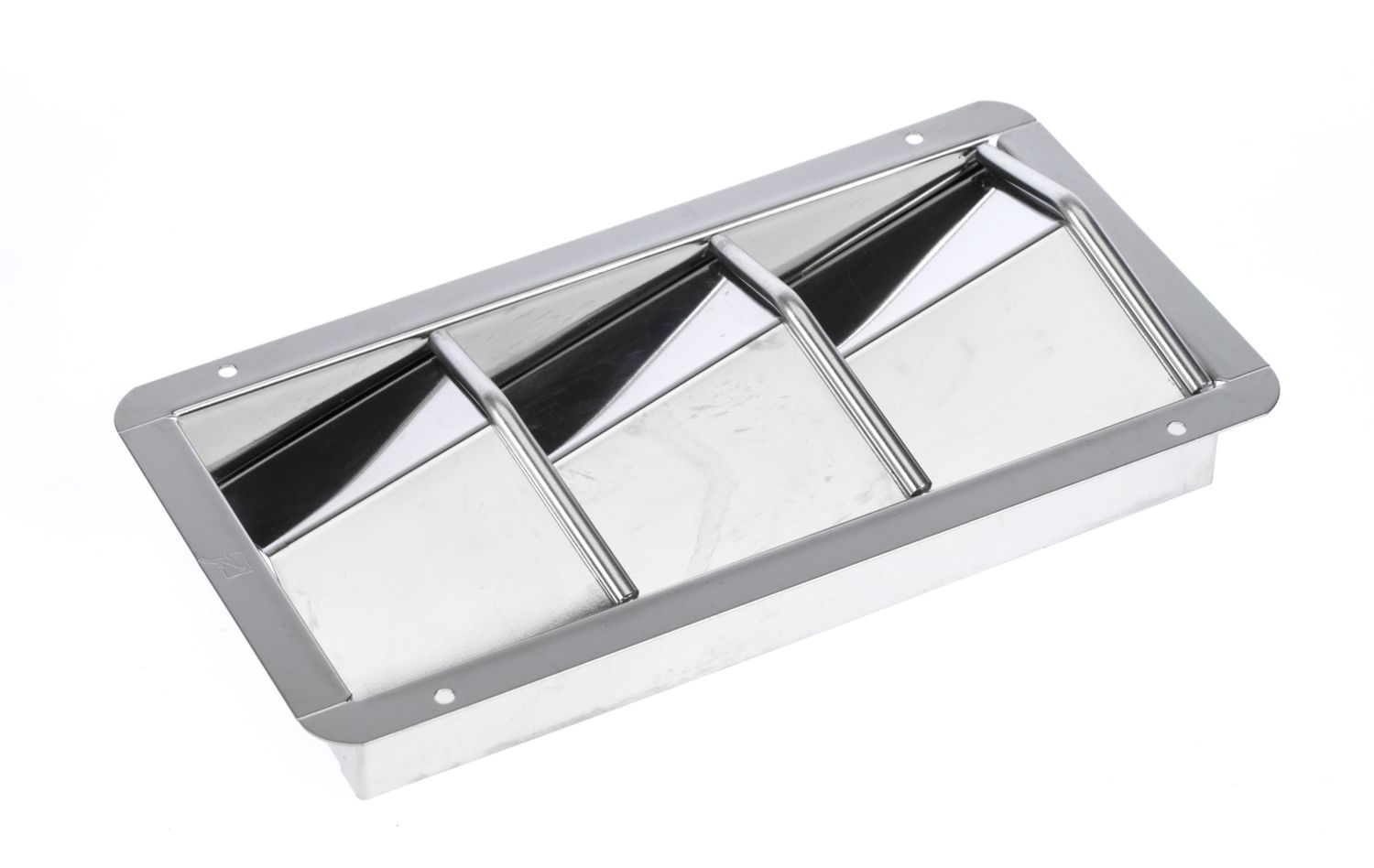 Lüfter mit verstärkten Luftschlitzen. Einfach mit 4 Schrauben zu montieren. Korrosionsbeständige, gestanzte Konstruktion aus Edelstahl 304. Verstärkte Rippen.