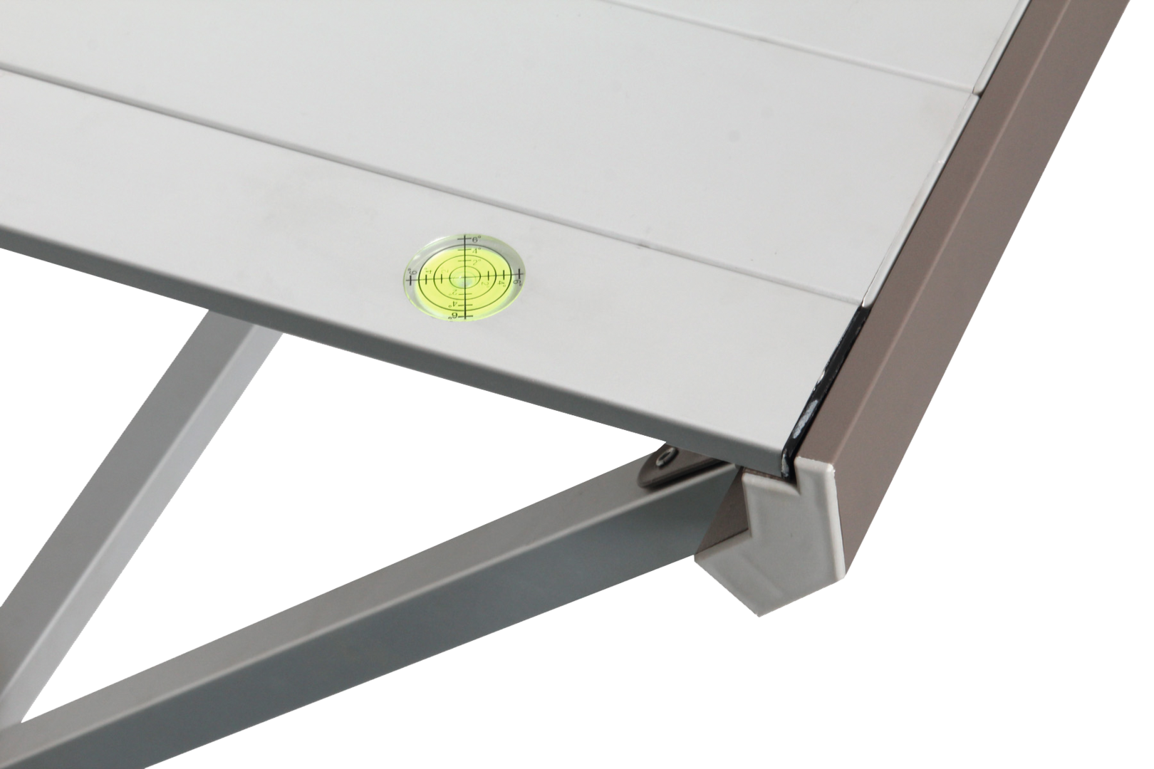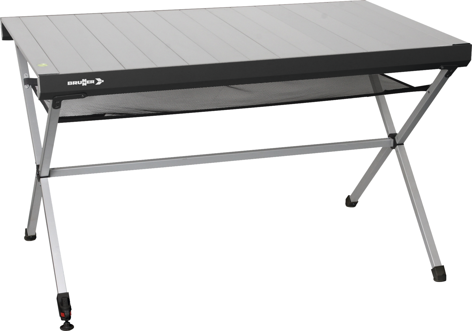 Patentierter Aluminiumtisch mit Rollplatte und einem speziellen, einfach zu montierenden Klapprahmen.