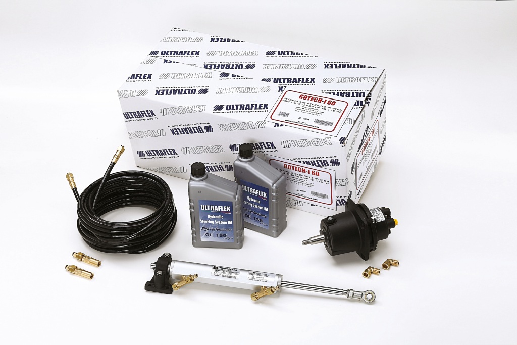 Wichtige Herstellerangaben: GOTECH-I; Hydraulik-Komplettsystem für einzelne Außenborder mit bis zu 115 PS. 3,8 Umdrehungen von Anschlag zu Anschlag. Steuerrad nicht enthalten; Das Komplettset GOTECH-I besteht aus folgenden Teilen:; UP18F Hydraulik Steuerkopf UP18F; UC69-I Hydraulikzylinder UC69-I; OL150 Hydraulik-Öl, 2 Liter; Schlauchkit Ø 1/4”, 6 Meter Länge (19,7”) mit vormontierten Endanschlüssen an einem Ende.; UP18F Steuerkopf; Eingebautes Sperrventil; Internes Überdruckventil (55 bar – 800 PSI); verjüngter 3/4“ Edelstahl Schaft; Korrosionsbeständiges Kompositgehäuse; Leicht zugängliches Sperrventil und Schafftversiegelung für einfachen Austausch der Dichtungen; Nur für den Einsatz mit UC81-UBF geeignet; Halbversenkter Einbau; Maximaler Durchmesser vom Steuerrad: 508 mm (20“); Gewicht 3,6 kg