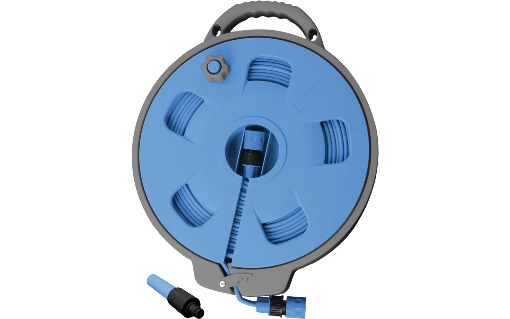 Schlauchtrommel ROLL ON 2.0. Schlauchkassette mit flexiblem, verwindungsfestem und lebensmittelechtem Flachschlauch (3-Kammersystem), der bei Gebrauch nur bis zur benötigten Länge ausgerollt werden muss. Schnellkupplungen und Spritzdüse sind im Lieferumfang enthalten.Schlauchlänge 15 m.
