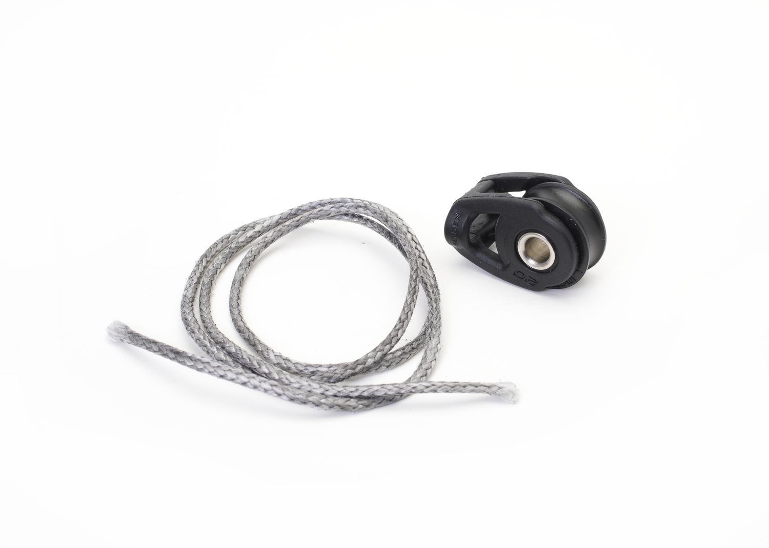 Blöcke mit Scheiben und Gehäuse aus Acetal und einem Kugellager aus rostfreiem Stahl mit Dyneema-Loops zum Einbinden.