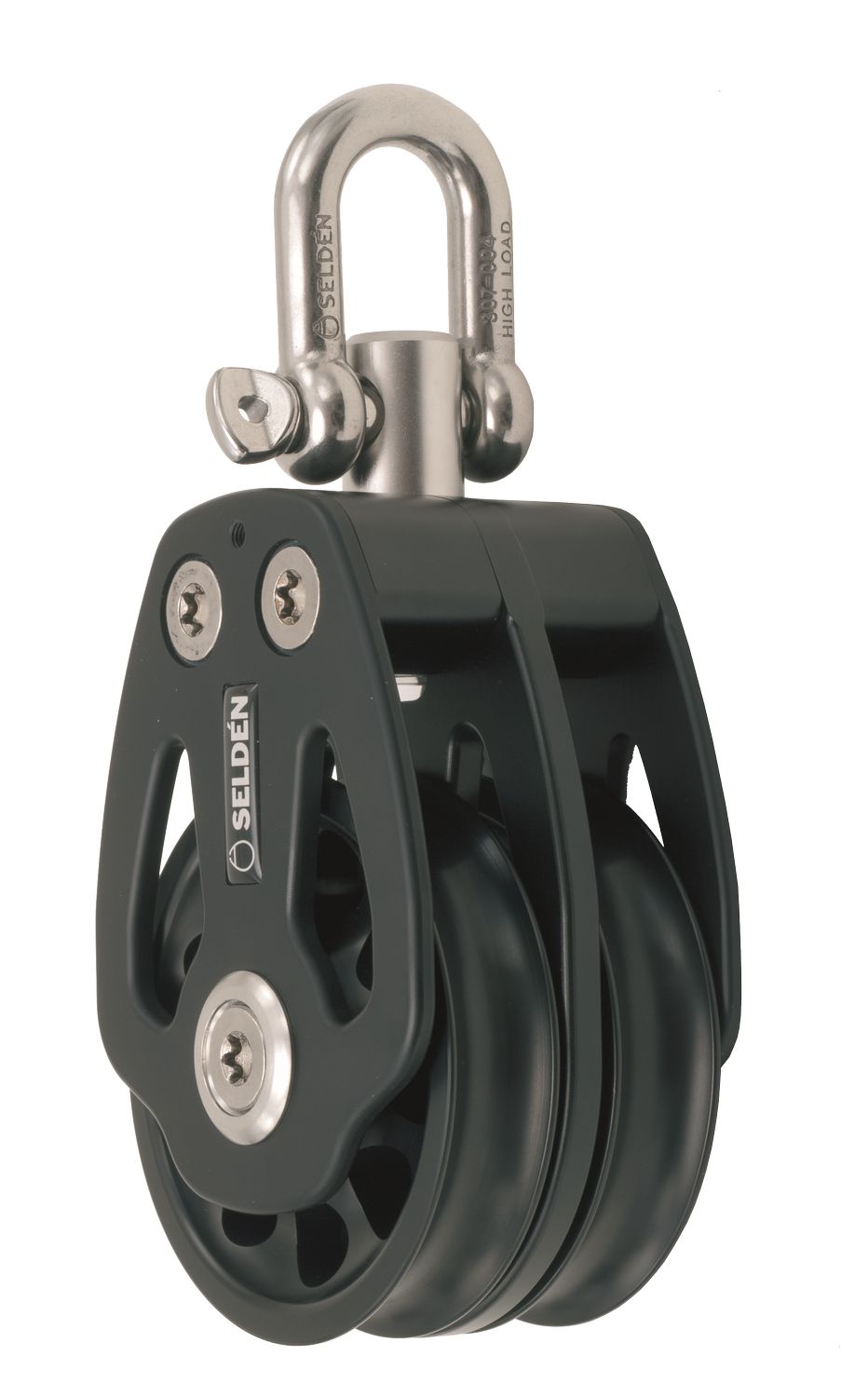 Die Blöcke haben ein Acetal-Lager und zwei axiale Delrin®-Lager, welche die Scheibe bei nicht genau zentrisch ein- bzw. auslaufender Leine stabilisieren.