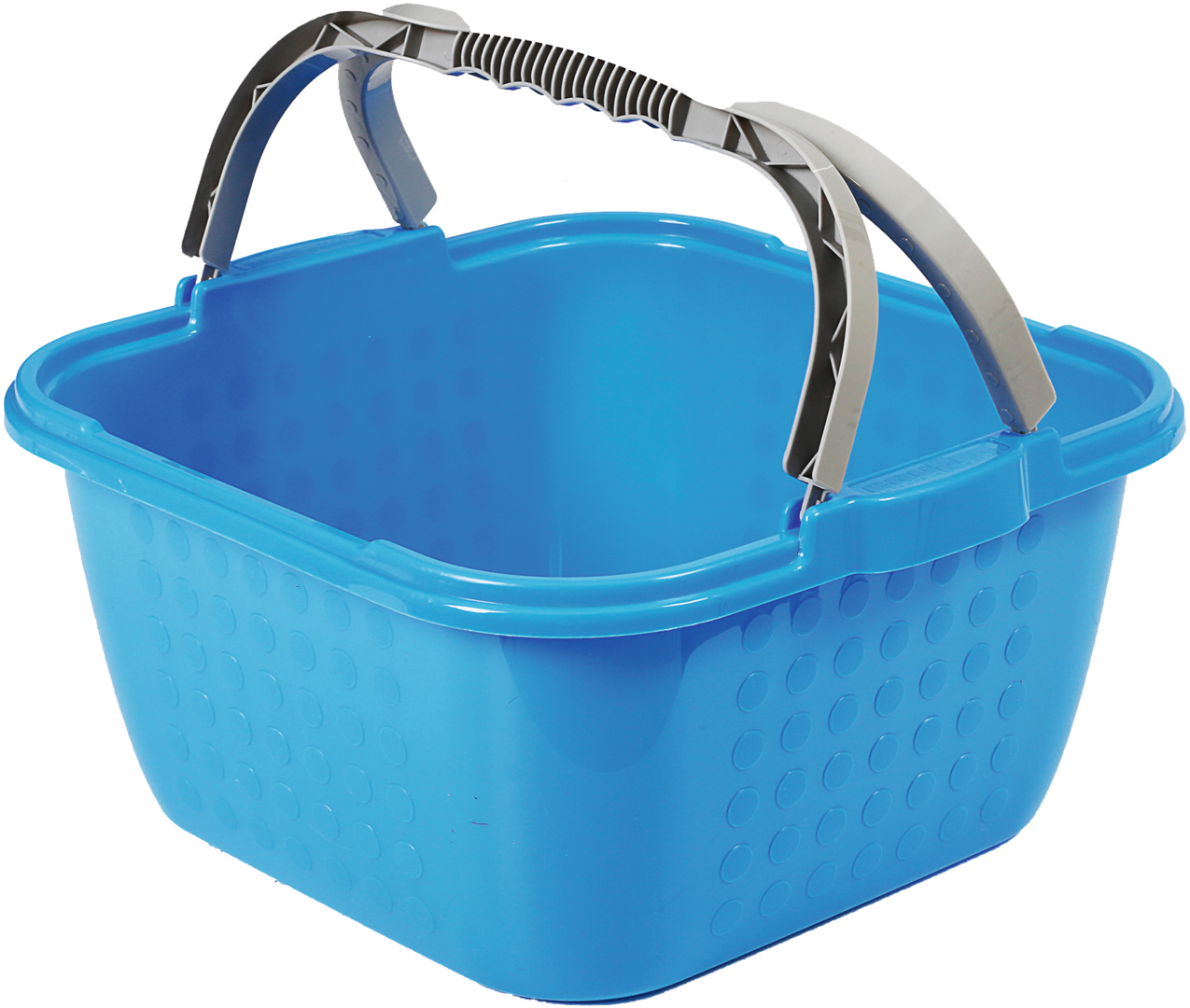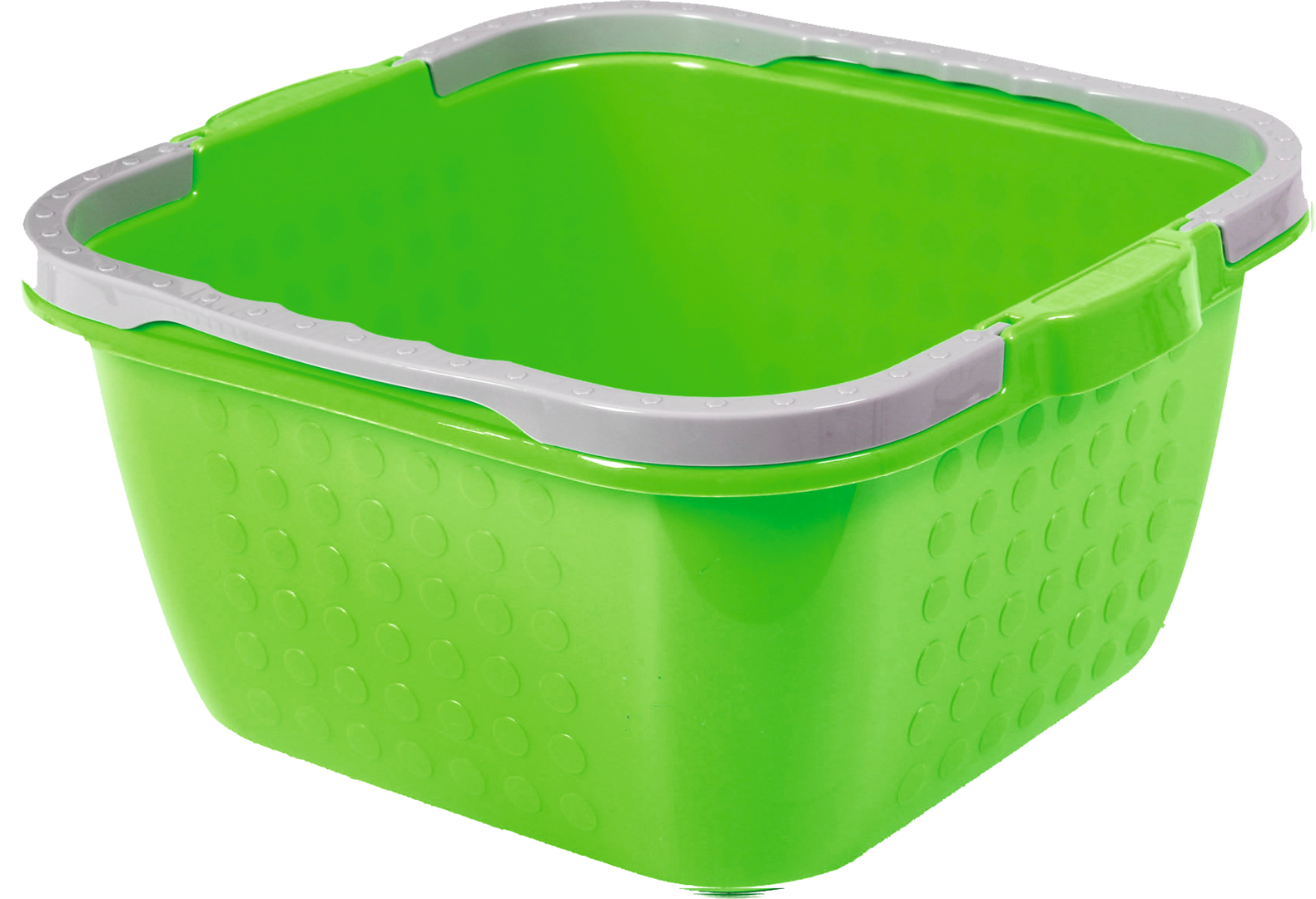 Klappgriffbecken aus lebensmittelechtem Kunststoff.