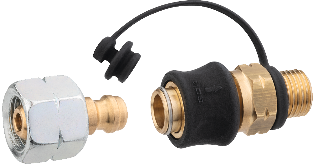 Zum schnellen Verbinden von Schlauchleitungen mit Gasgeräten ohne Werkzeugeinsatz.