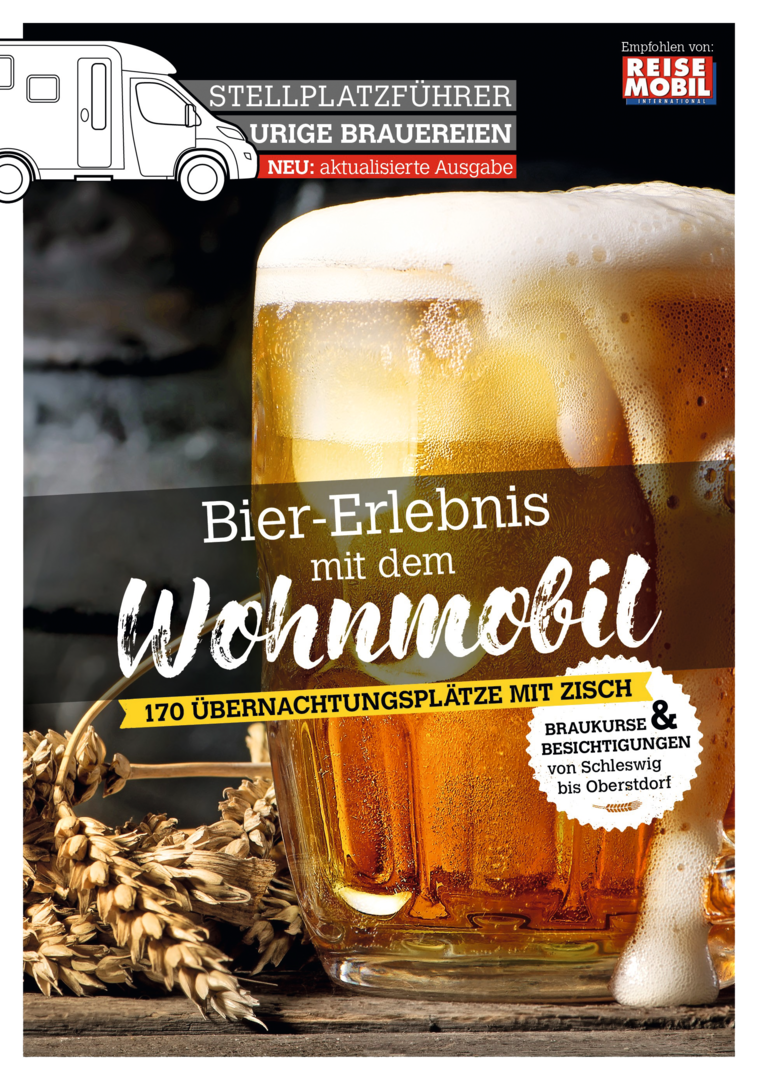 Stellplatzführer Urige Brauereien 2. Auflage. Enthält 170 Stellplätze mit Zisch inklusive Anschrift, Kontaktdaten, vor allem aber das Angebot der Brauereien rund ums Bier: Führungen, Seminare, Verkostungen, inklusive Fotos. Entfernungsangabe zum nächsten Wohnmobilstellplatz, Brauereien mit eigenem Stellplatz erhalten ein Signet. Mit Informationen zu den nächstgelegenen Stellplätzen: Adresse, GPS-Daten, Kontakt, Service- und Freizeitangebot, Übernachtungspreis.