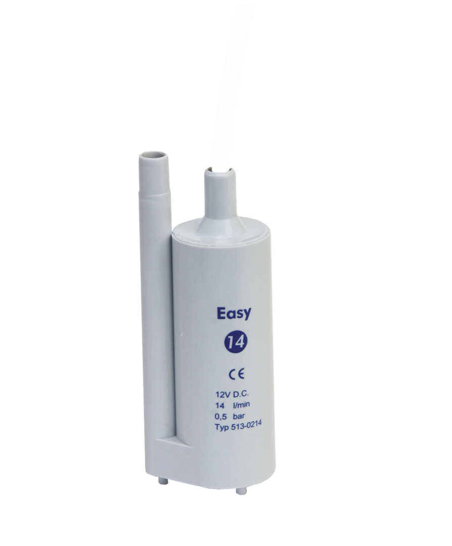 Tauchpumpe EASY. Förderleistung 14 l/min. Druck 0,5 bar. Kabel 1 m. Anschluss an 12 V.