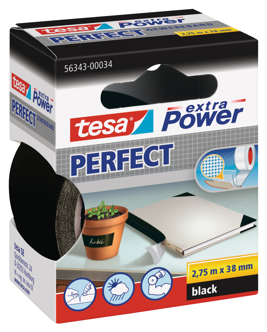 Das hochwertige tesa extra Power® Perfect Gewebeband (Gafferband) ist ein überaus nützlicher Alltagshelfer, der im Innen- und Außenbereich eingesetzt werden kann. Dank der überlegenen tesa®-Klebetechnologie ist das Gaffaband besonders belastbar. Es ist zwar enorm reißfest, kann aber mit wenig Kraftaufwand auch per Hand abgerissen werden – die Schere kann in der Schublade bleiben. Aufgrund der hohen Witterungsbeständigkeit eignet es sich auch für den Outdoor-Einsatz. Generell ist das Gafferband eine clevere und saubere Klebelösung bei Reparaturen, Verschönerungen oder Instandsetzungen.