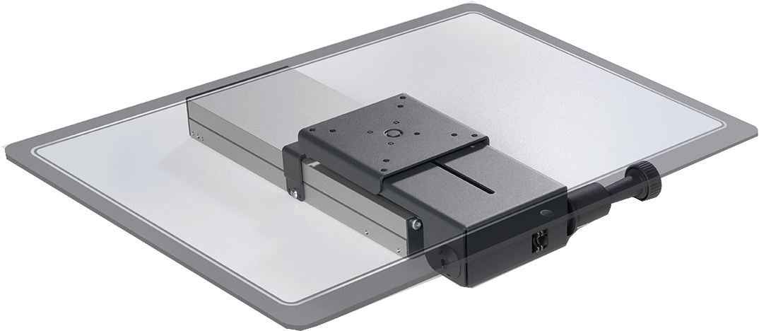Mindest-fachtiefe 500 mm. Profillänge 330 mm. Dreh-, schwenk- und absenkbar. Abmessungen zusammengeklappt inkl.