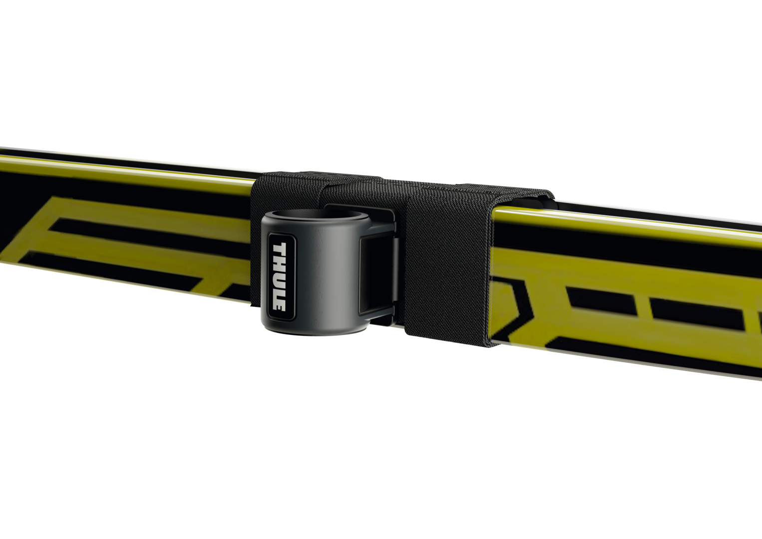 Mit Sicherheitsschloss. Kann an einer Wand oder einem Dachträger befestigt werden. Passt an allen Thule Lastenträgertraversen. Das dünne Material lässt sich bei Nichtgebrauch flach zusammenlegen. Für 1 Paar Ski. Maximale Zuladung 7 kg.