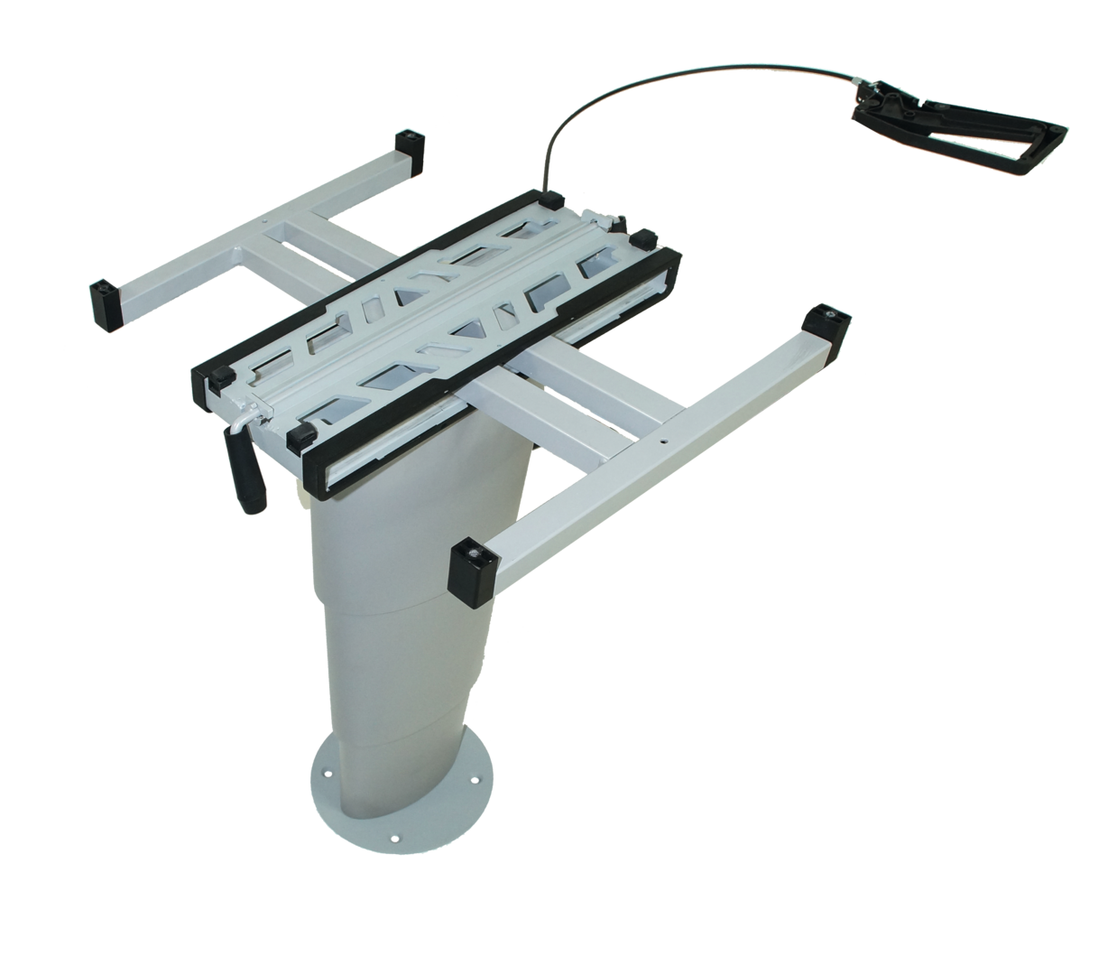 Durch das Ziehen des Hebels lässt sich der höhenverstellbare Tisch stufenlos absenken. Das Hinauffahren wird durch die integrierte Gasdruckfeder unterstützt.