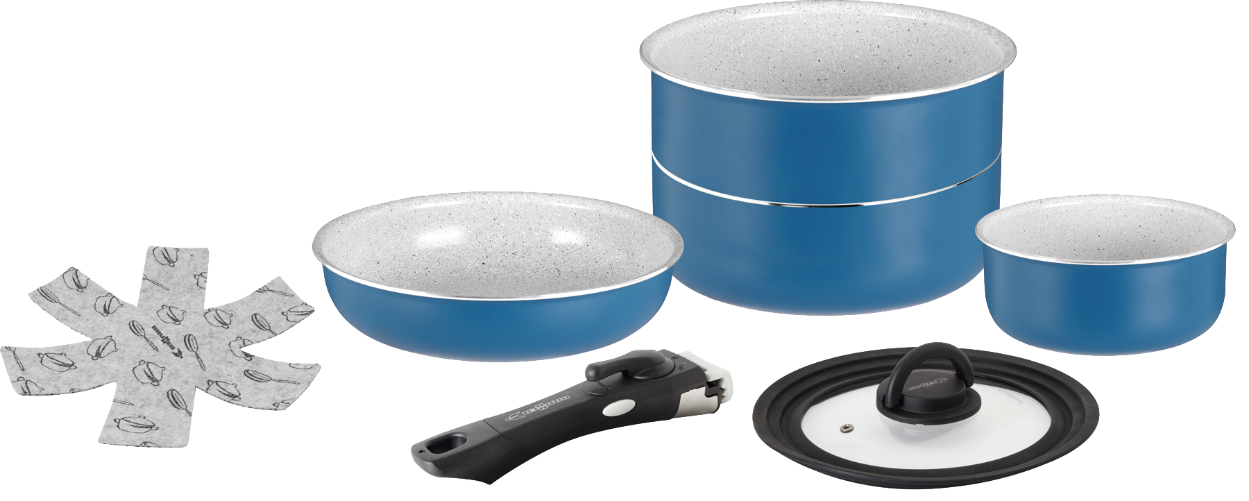 Kochtopfset aus 100 % recyceltem Aluminium. Mit patentiertem VacuBlock-System. Kompakt verstaubar. Induktionsgeeignet. Inklusive praktischem Pfannenschutz.