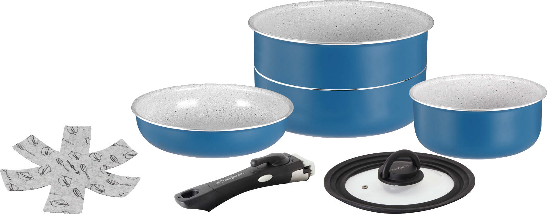 Kochtopfset aus 100 % recyceltem Aluminium. Mit patentiertem VacuBlock-System. Kompakt verstaubar. Induktionsgeeignet. Inklusive praktischem Pfannenschutz.