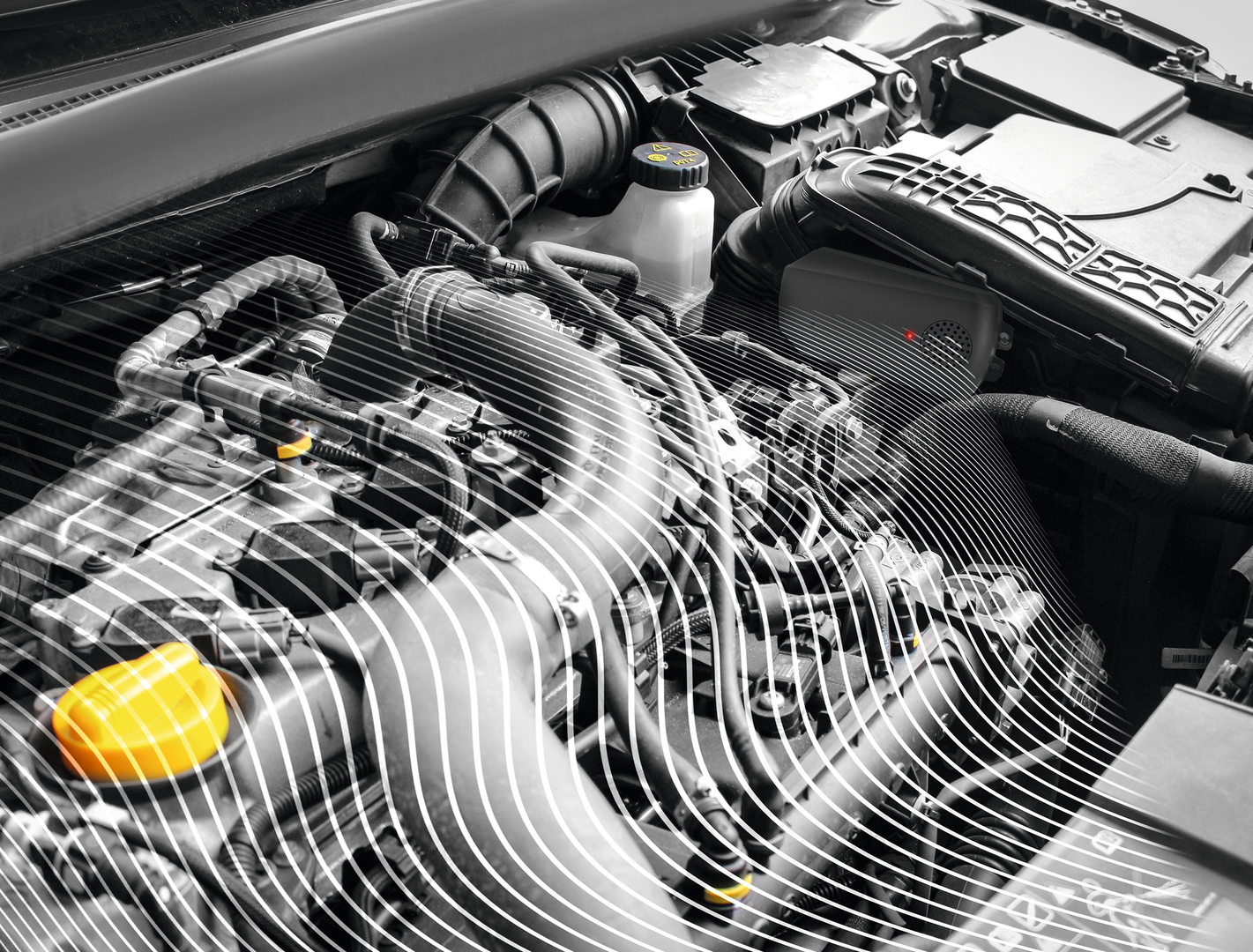 Hochwirksames batteriebetriebenes Gerät zur Vermeidung von Marderschäden im Motorraum.