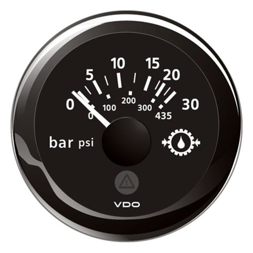 VL AFTERMARKET PRESSURE IND. – BAR – DOUBLE SCALE – 0 BAR – 30 BAR – 10-184 OHM – DOUBLE LENS – ROUND BLACKBEZELVeratron VDO VL AFTERMARKET PRESSURE IND. – BAR –