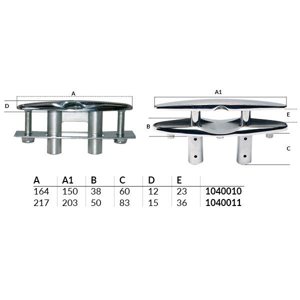 Versenkbare Klampe aus hochglanzpoliertem Edelstahl AISI 316. Die Klampe wird mit zwei M10 Bolzen befestigt.