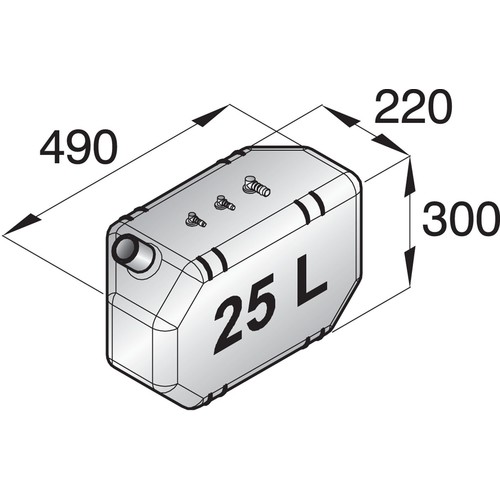• Schlauchanschluss Ø 38 mm (Ø 51 mm für FTANK25) zum Füllen und 16 mm für Entlüftungsleitung