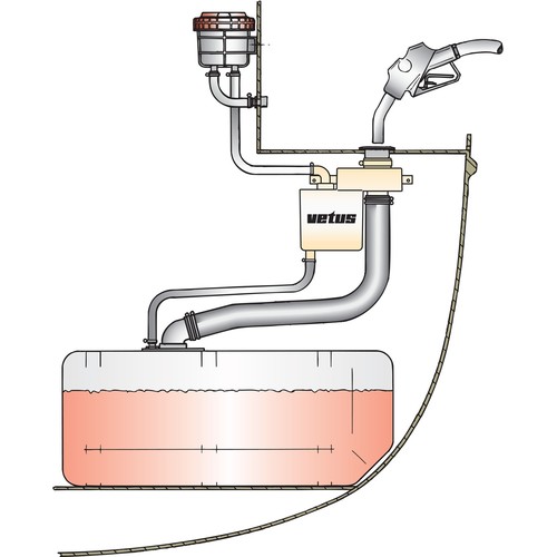 Ein VETUS-Dieselgeruchfilter kann auch in diese Entlüftungsleitung eingebaut werden. Wenn der Dieselgeruchs-Filter