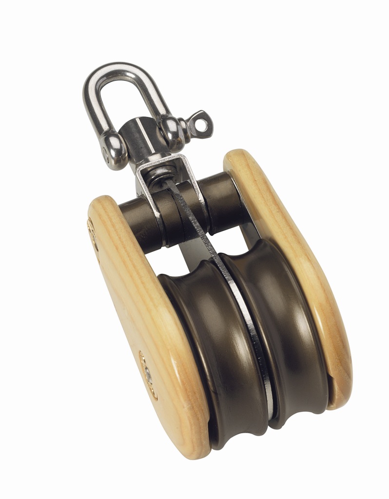 VICTORY-Doppelblock Esche 45mm m.Wirbel gehört zur Kategorie doppelt, Wirbelauge und unterstützt die dort typischen Ausrüstungs- und Montageaufgaben an Bord.