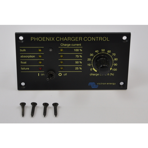 Das Phoenix Charger Control Panel ermöglicht die Fernsteuerung und -überwachung des Ladevorgangs mit LED-Anzeige des Ladezustands. Darüber hinaus bietet das Remote-Panel auch eine Ausgangsstromeinstellung, mit der der Ausgangsstrom und damit die aus der AC-Versorgung entnommene Leistung begrenzt werden kann. Dies ist besonders nützlich, wenn das Ladegerät mit begrenztem Landstrom oder kleinen Stromaggregaten betrieben wird. Das Bedienfeld kann auch zum Ändern der Batterieladeparameter verwendet werden. Die Helligkeit der LEDs wird während der Nacht automatisch reduziert. Die Verbindung zum Ladegerät erfolgt über ein Standard-UTP-Kabel.