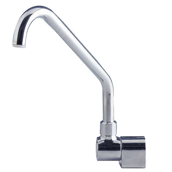 Wasserhahn für Fußpumpe aus verchromtem Messing. Hält Wasserwerksdruck (ca. 3 bar) stand. Schlauchanschluss unbedingt beachten.