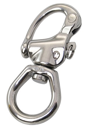 WICHARD-Schnappschäkel 80mm gr. Wirbelauge gehört zur Kategorie mit großem Wirbelauge und unterstützt die dort typischen Ausrüstungs- und Montageaufgaben an Bord.