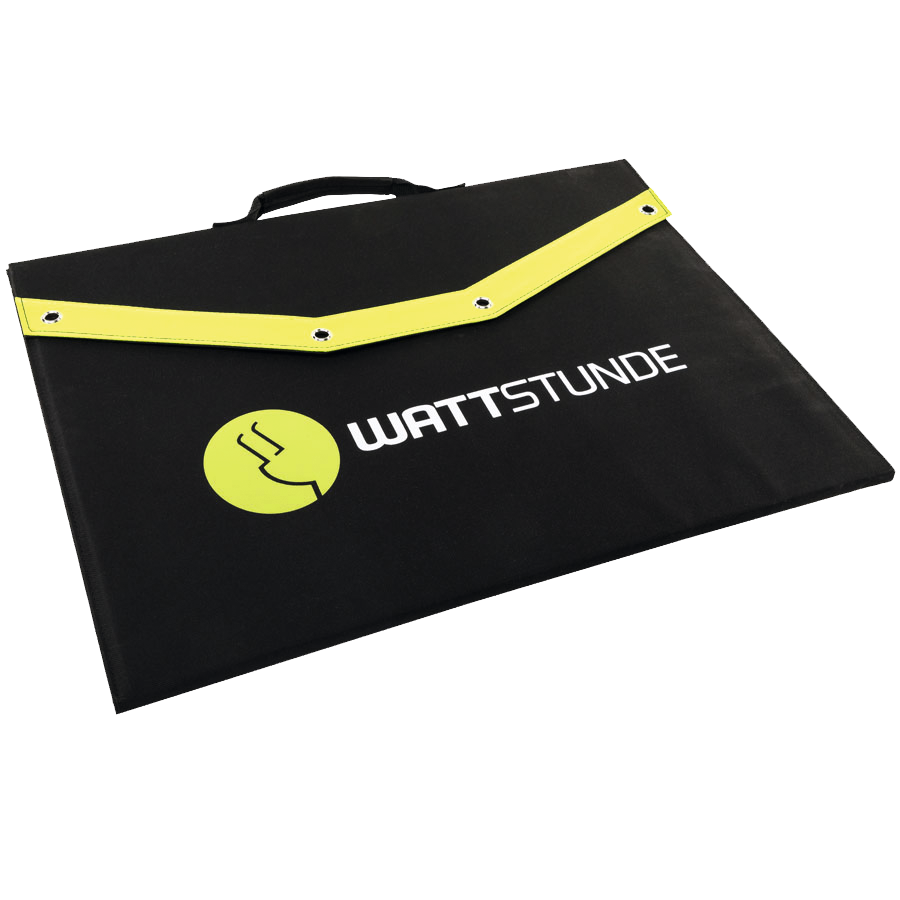 Die WATTSTUNDE® SunFolder Solartaschen sind dank des innovativen Designs sehr leicht, absolut platzsparend und bieten dadurch ein hohes Maß an Flexibilität und Einsetzbarkeit. Ob hinter der Windschutzscheibe bei Parkbetrieb oder einfach im Freien, die Solartaschen können beliebig dorthin platziert werden wo die Sonne scheint. Zusätzlich garantiert die Ausstattung mit SunPower Back-Contact Solarzellen eine hohe Energieausbeute. Die SunFolder Solartaschen von WATTSTUNDE® verfügen über ein 4,5 m langes Anschlusskabel, das am Ende mit einem Anderson Stecksystem versehen ist.