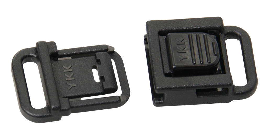 Wichtige Herstellerangaben: YKK Micro-Steckschnallen, Kunststoff schwarz